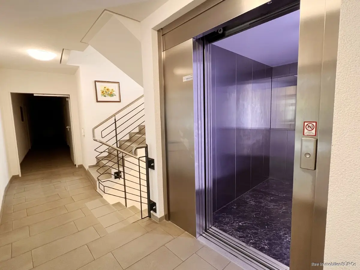 Das Haus verfügt über einen Fahrstuhl, mit dem Sie barrierefrei ins zweite Obergeschoss sowie in den Keller gelangen können.