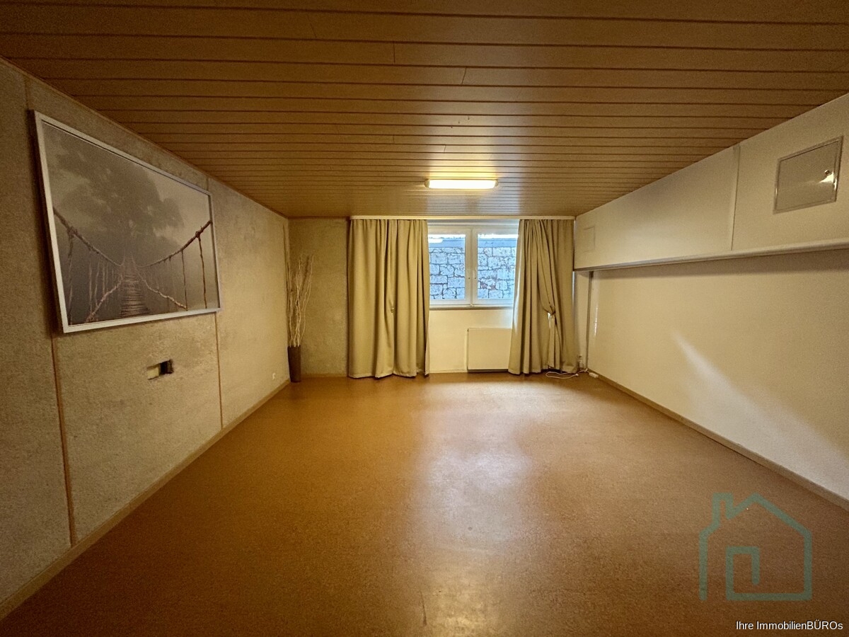 Im Untergeschoss befindet sich ein weiterer Raum, der flexibel als Archiv, Lagerfläche oder Schulungsraum genutzt werden kann.