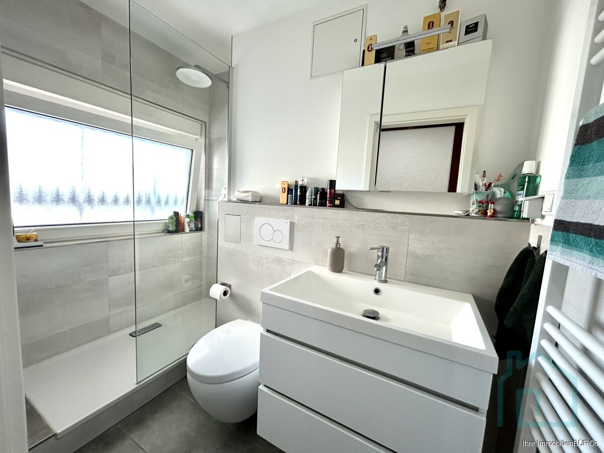 Das Badezimmer wurde renoviert und präsentiert sich in einem modernen und gepflegten Zustand.