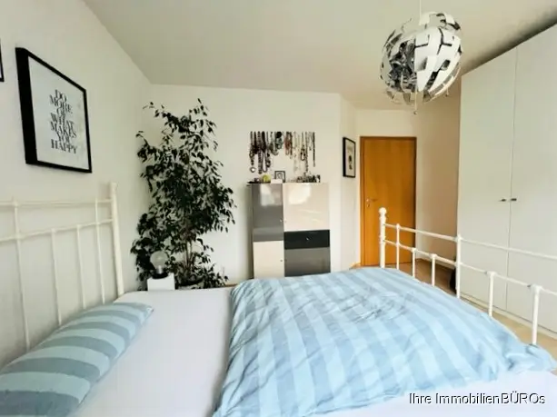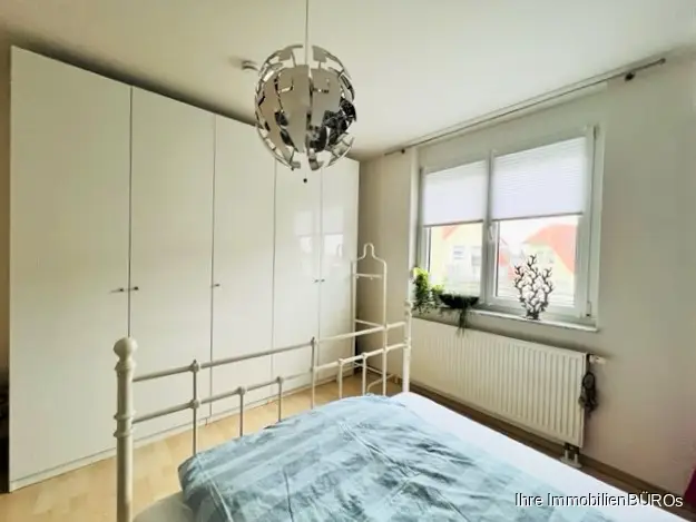 Das charmante Schlafzimmer bietet genügend Platz. Ein weiteres Zimmer, welches als Büro oder Kinderzimmer genutzt werden kann, vervollständigt den Wohnbereich.