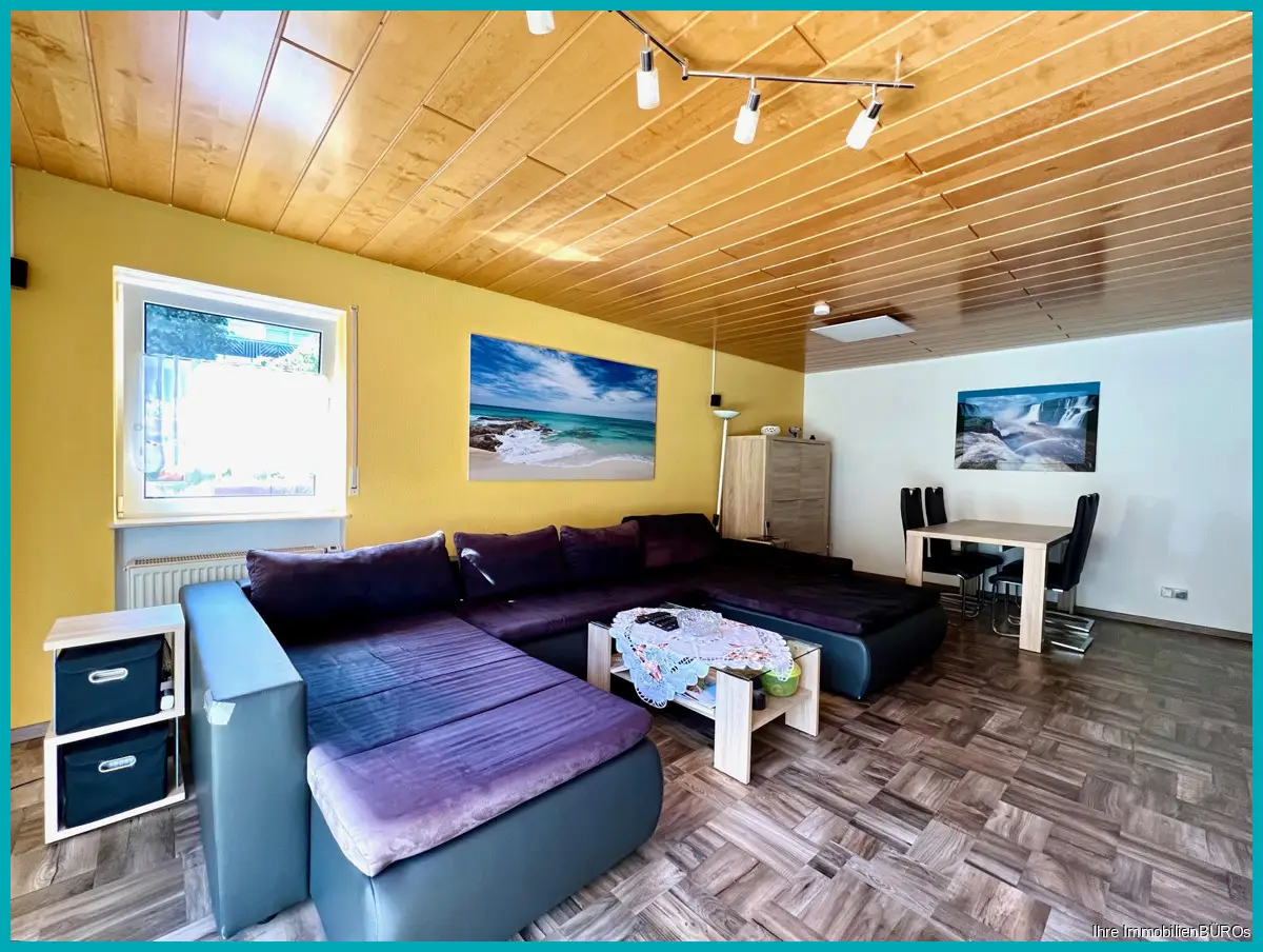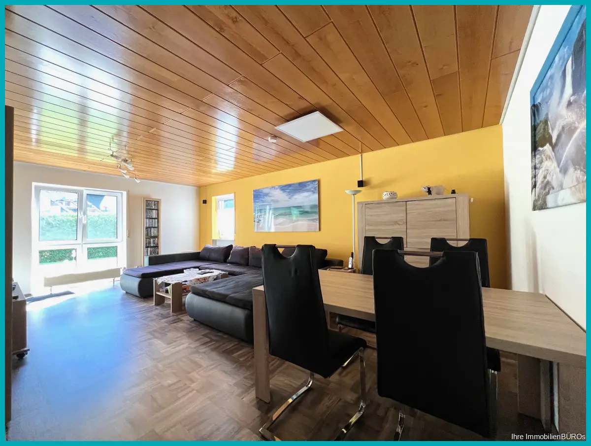 Das Wohn- und Esszimmer hat eine schöne Größe. Auch von hier haben Sie Zugang zur Terrasse und in den Garten.