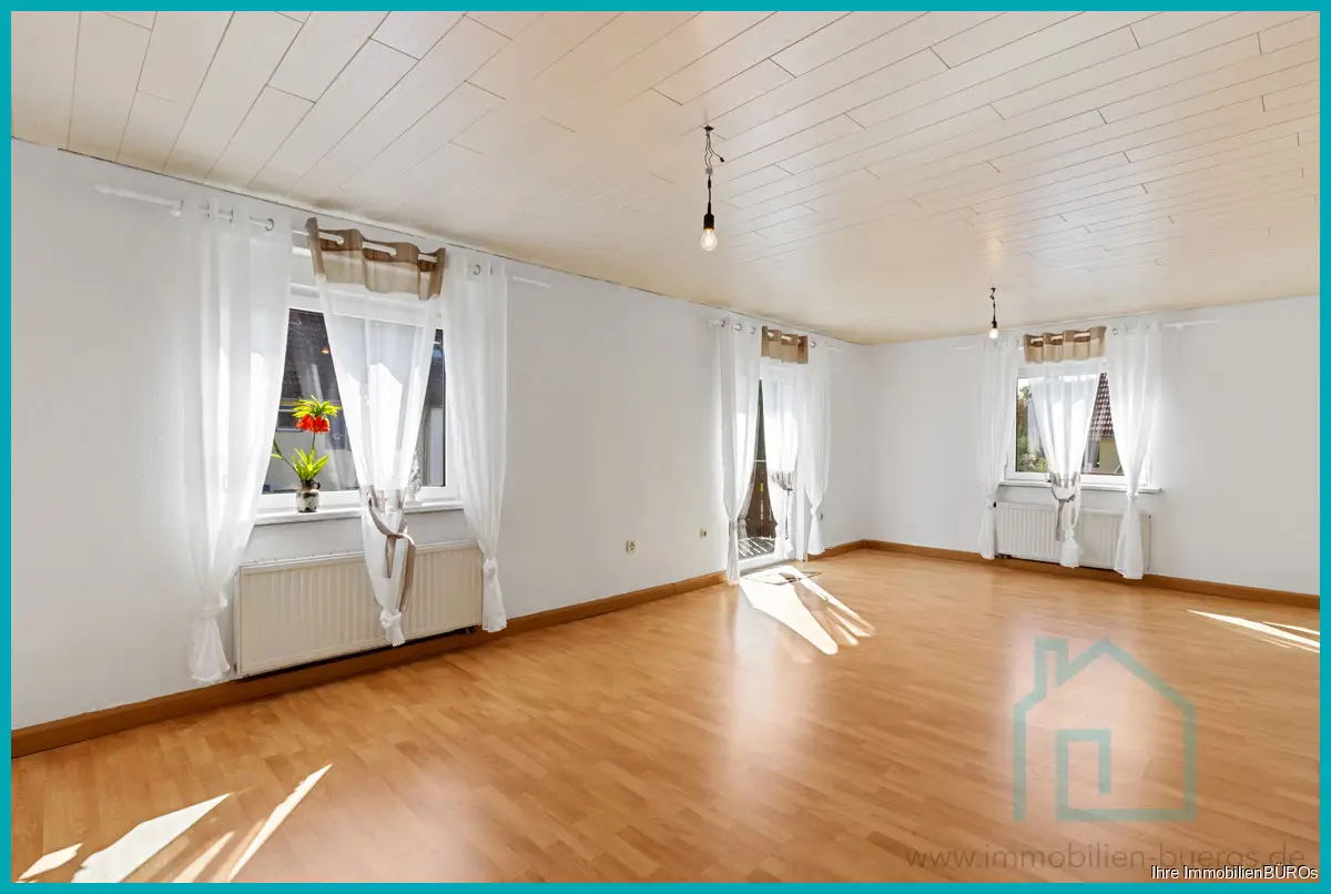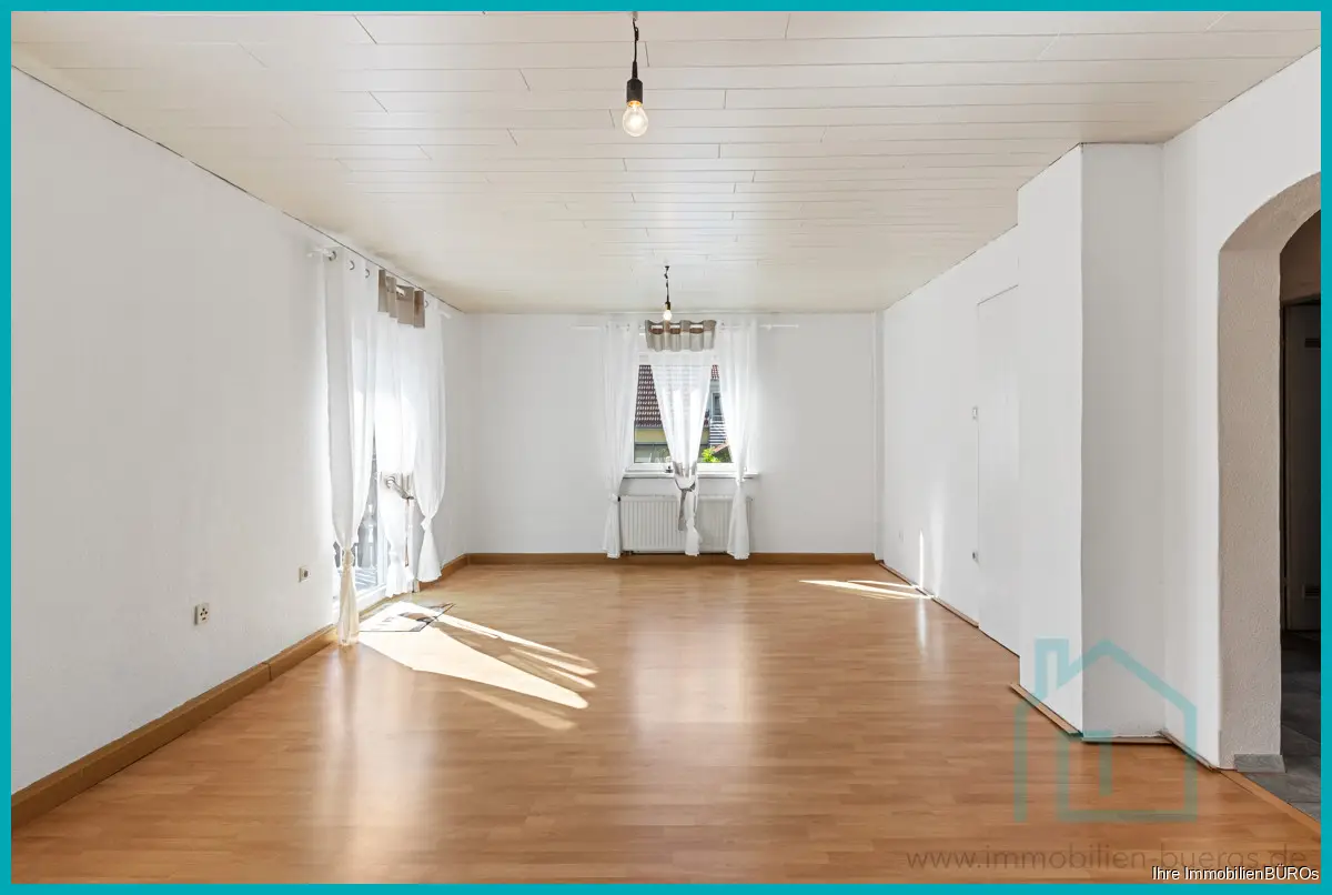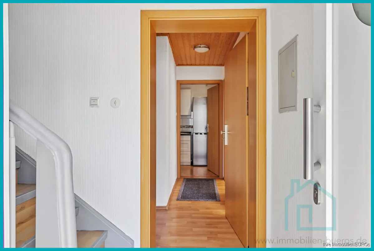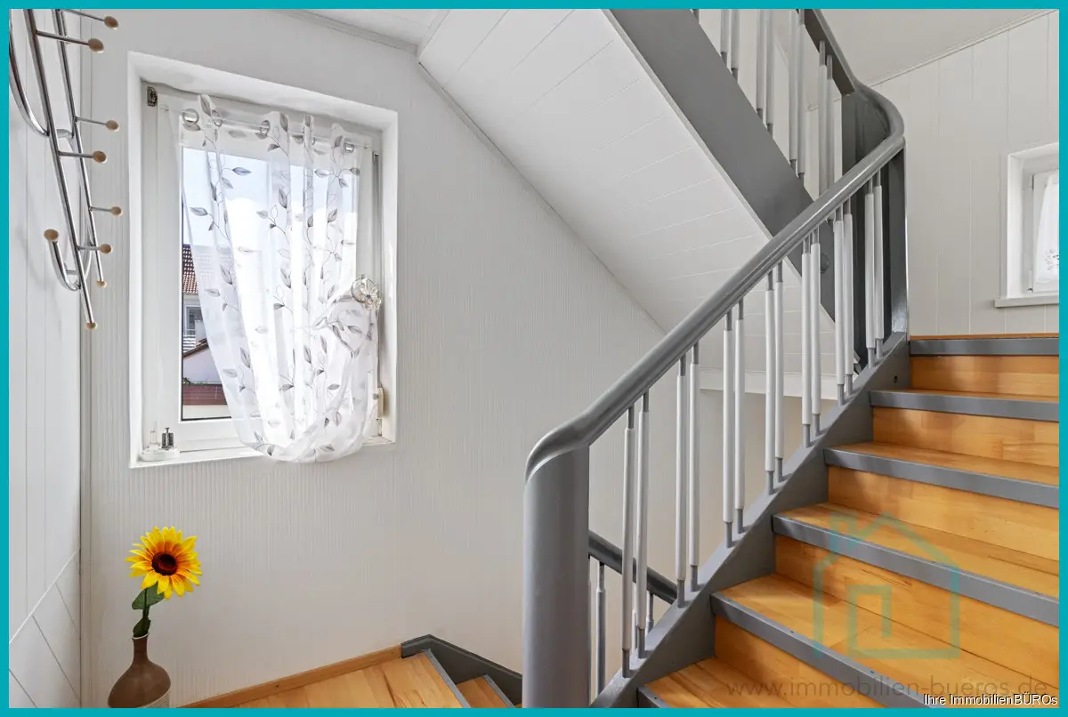 Die zweite Wohnung erstreckt sich über das Ober- und das Dachgeschoss, zusammen ca. 76 m² Wohnfläche, verteilt auf 3-4 Zimmer, Küche und Bad.