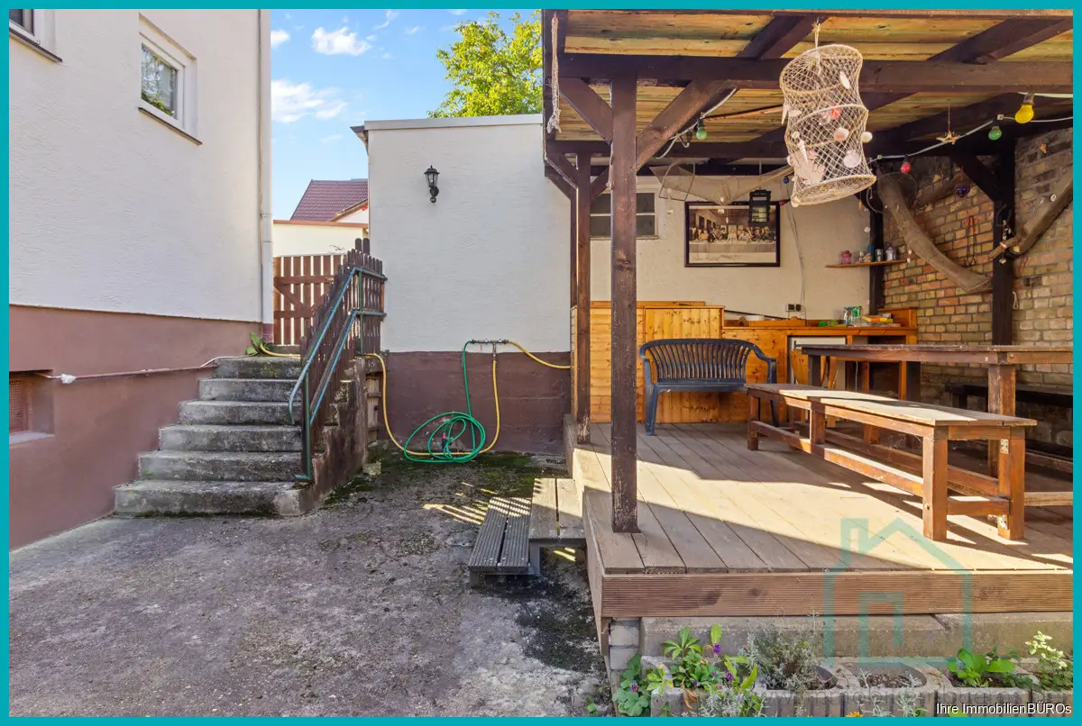 Das Grundstück ist mit 257 m² überschaubar, ein sonniger Vorgarten, ein Freisitz mit Schatten an heißen Sommertagen und eine Garage gibt es hier.