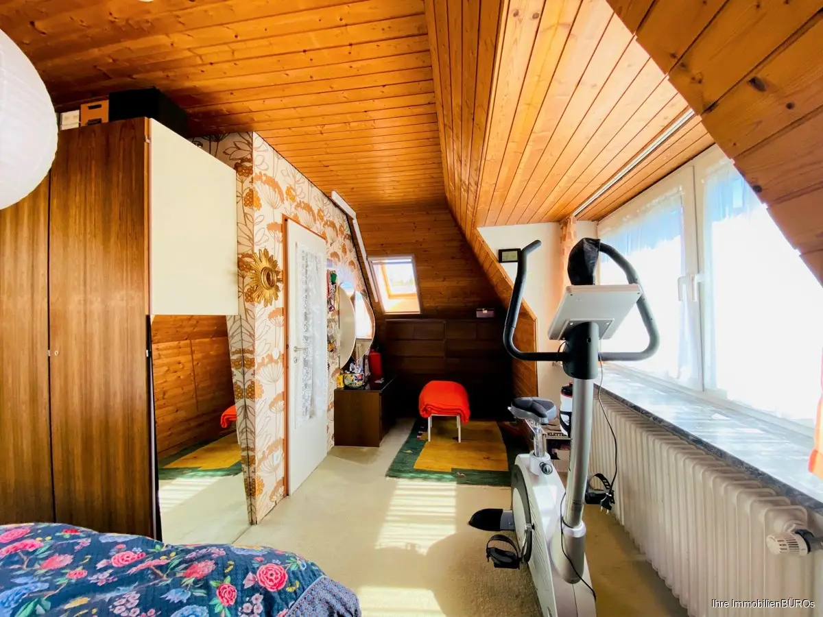 Ein weiteres Zimmer, welches derzeit als Büro genutzt wird, sowie ein Badezimmer mit Badewanne und WC vervollständigen diese Wohnebene.