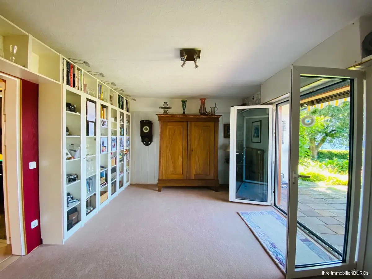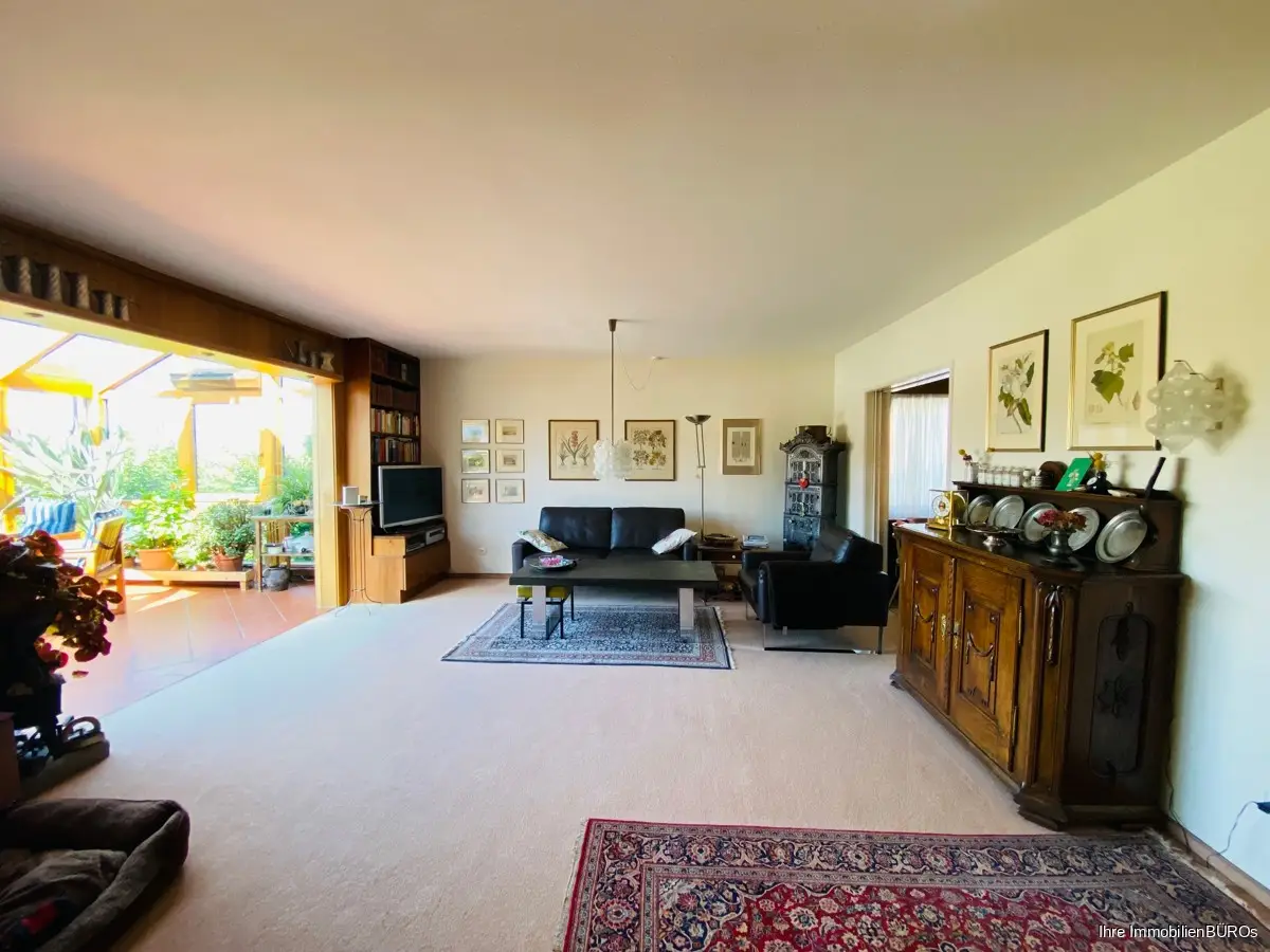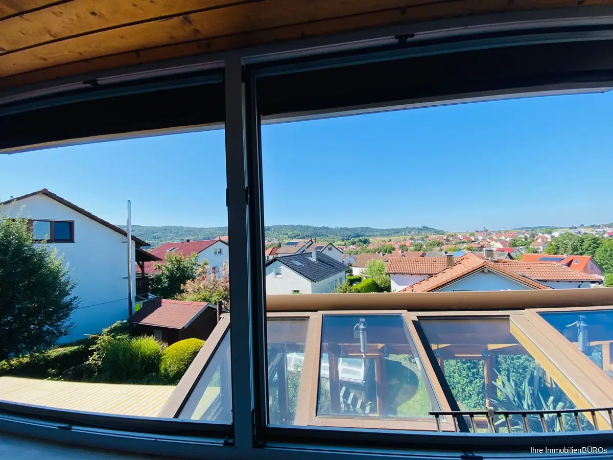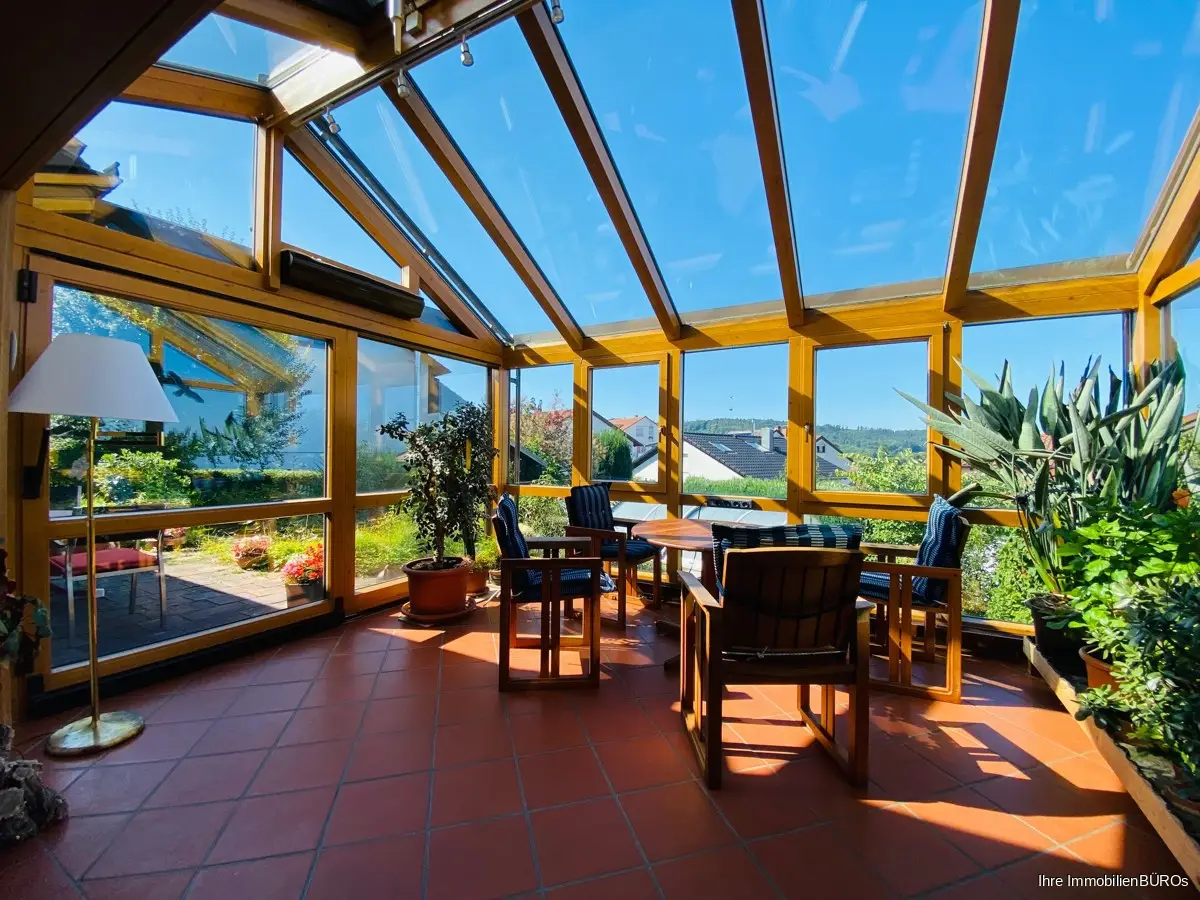 Durch die Fenster des Wintergartens haben Sie einen traumhaften Blick über die Häuser in die Natur.
