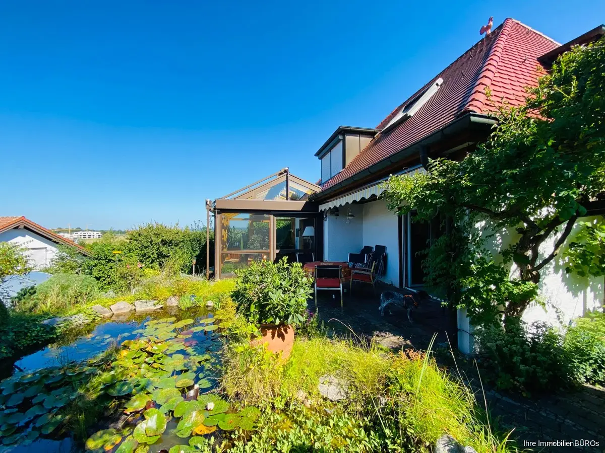 Zwei besondere Highlights sind der Seerosenteich vor der Terrasse und der überdachte Außenpool.