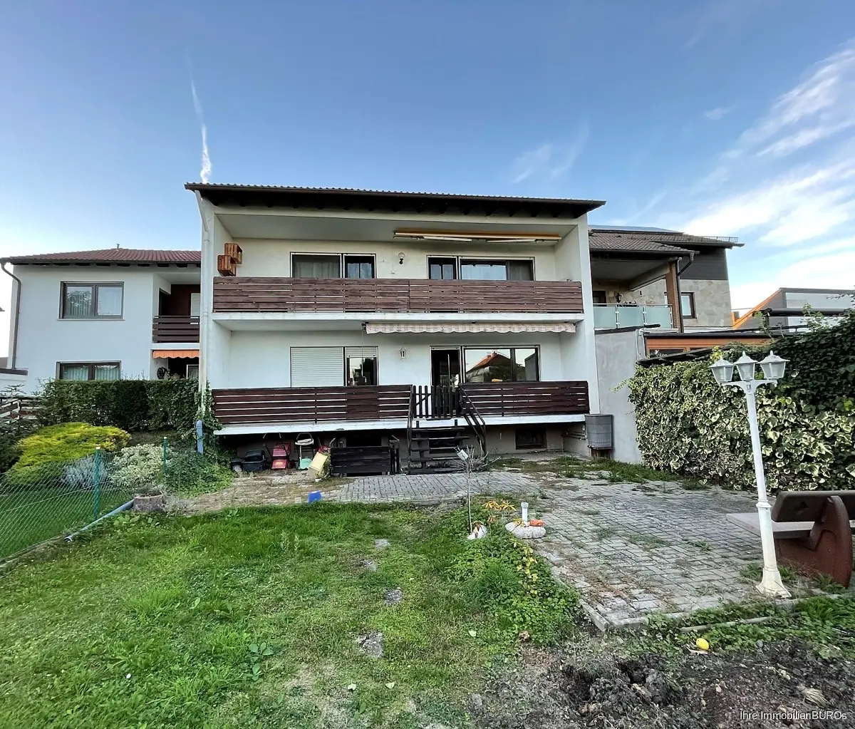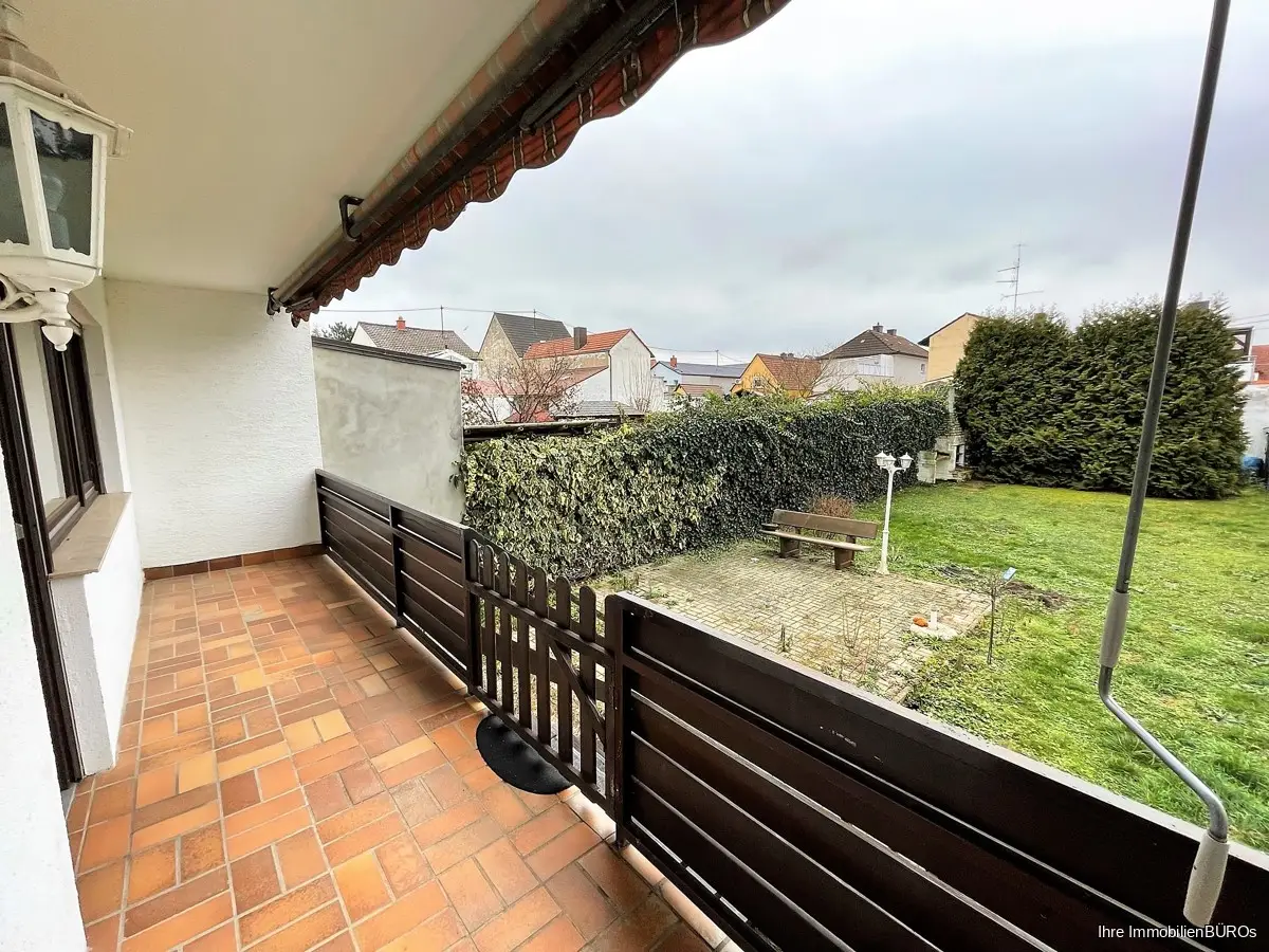 Vom Wohn-Esszimmer sowie aus dem Schlafzimmer gelangen Sie auf den Balkon mit Zugang zum eigenen Gartenanteil.
