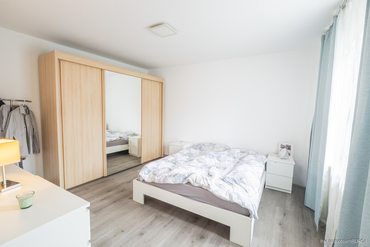 Im Obergeschoss befinden sich zudem ein helles Tageslichtbad sowie das Schlafzimmer. Zudem ein Durchgangszimmer, das sich hervorragend als Büro eignet.
