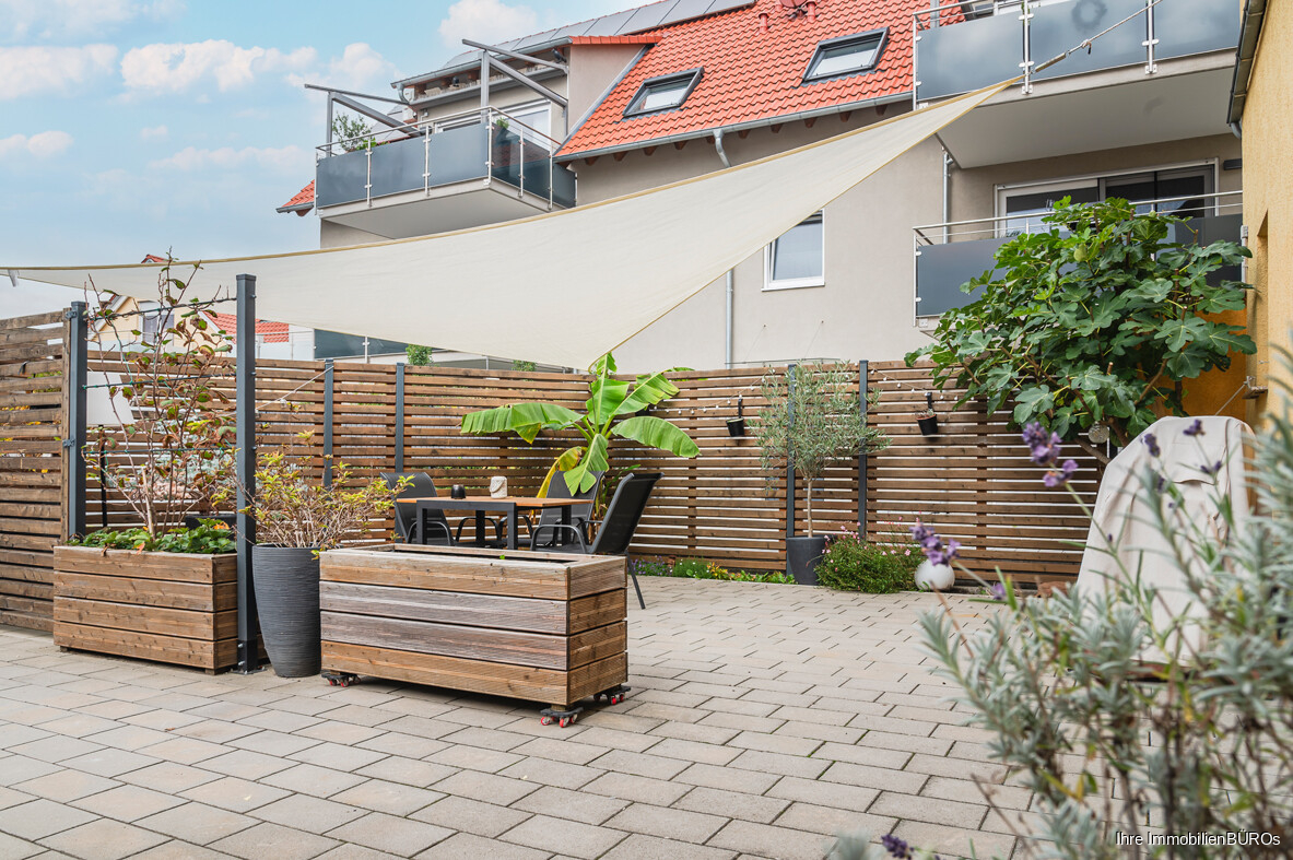 Zur Wohnung gehören außerdem eine gemütliche Terrasse im Außenbereich sowie ein eigener KFZ-Stellplatz.