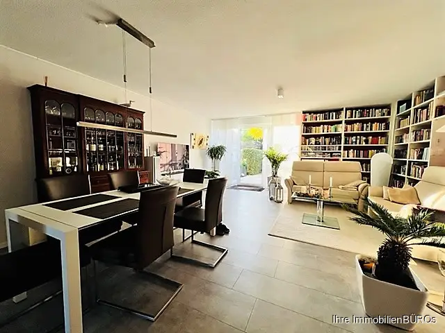 Nachdem Sie das Haus durch einen kleinen Eingangsbereich betreten haben, eröffnet sich Ihnen sofort das großzügige und lichtdurchflutete Wohn- und Esszimmer.