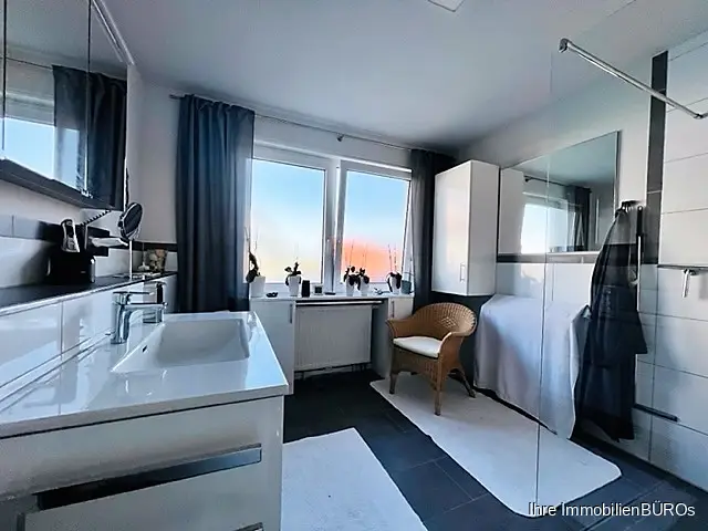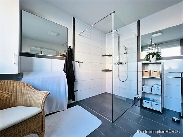 Das 2021 komplett neu gestaltete Badezimmer mit einer großen bodengleichen Dusche und WC ist zweifelsfrei ein Highlight.