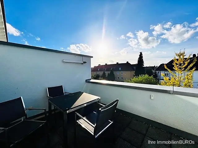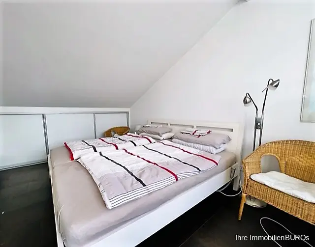 Das größere der beiden Zimmer hat Zugang zur Dachterrasse. Hier können Sie geschützt die Abendsonne genießen.