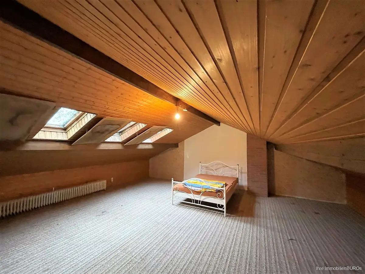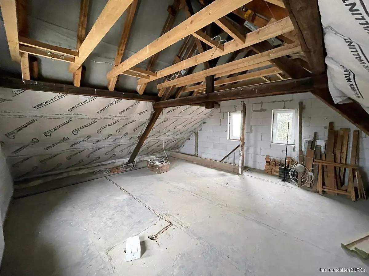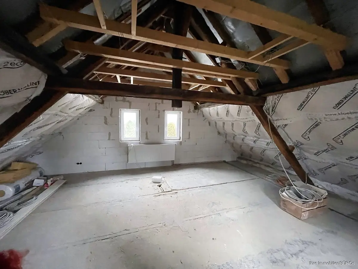 Dafür ist die Öl-Heizung mit Solarthermie 2018 erneuert worden und der Dachboden wurde schon zum Teil ausgebaut (Dämmung, neue Fenster und Heizung)