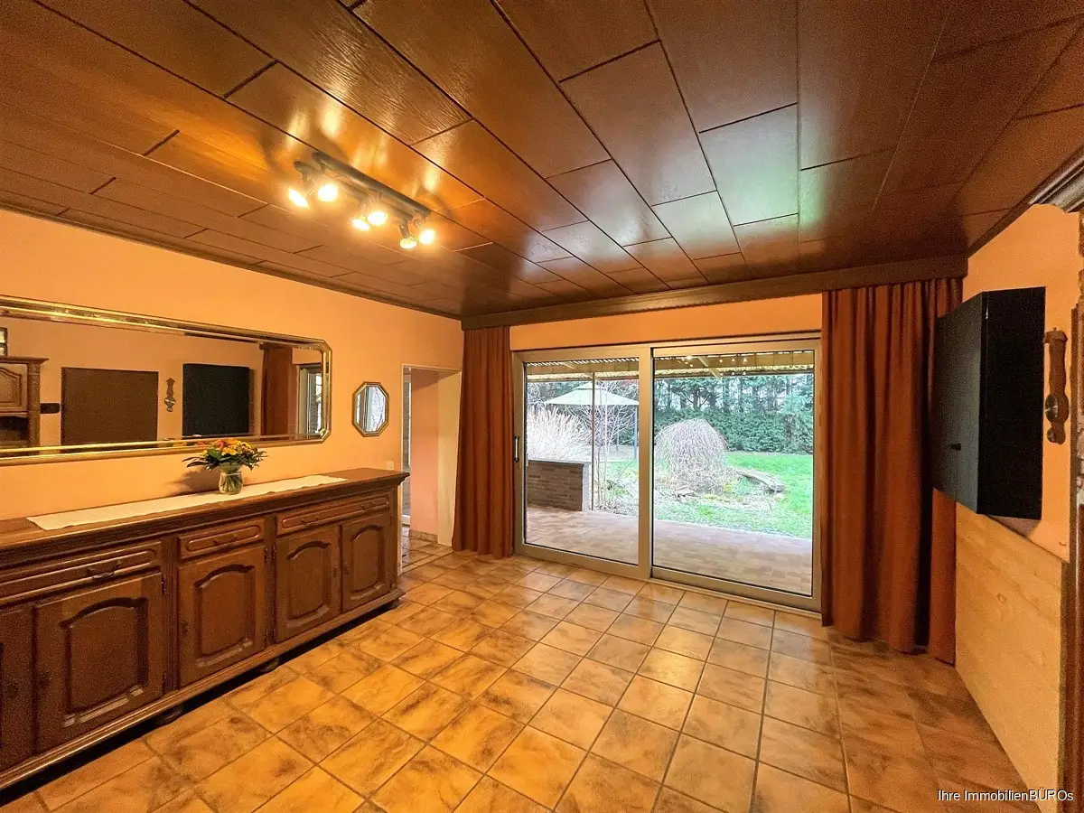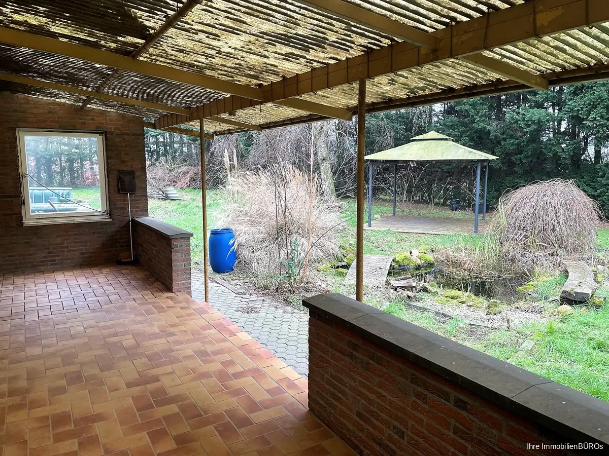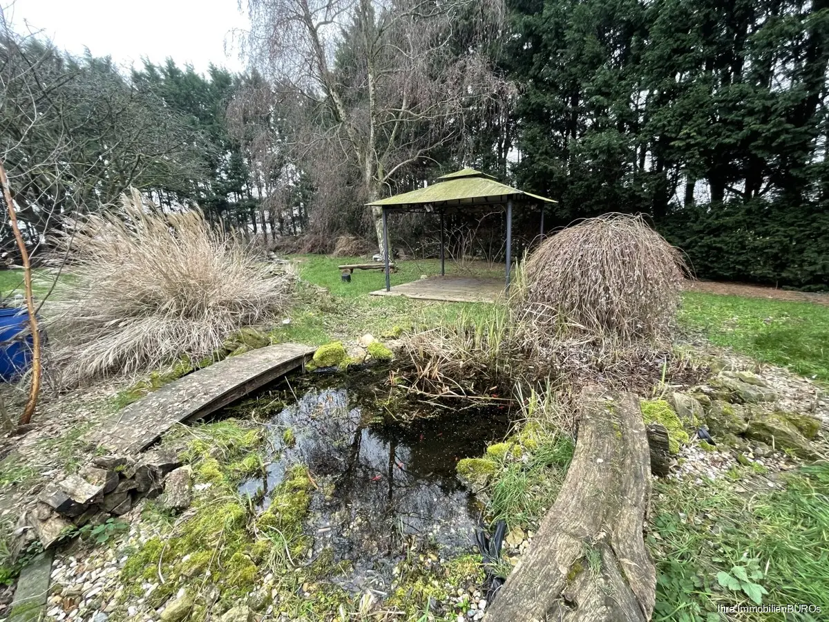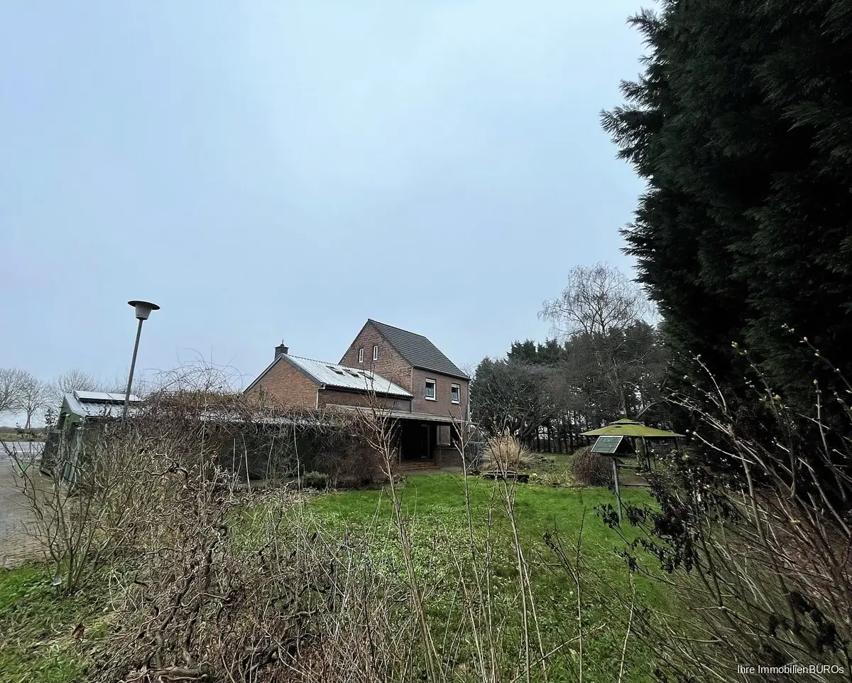 Das Einfamilienhaus mit zwei Garagen steht auf einem 1.794 m² großen Grundstück im Außengebiet ca. 4 km von Heinsberg entfernt.