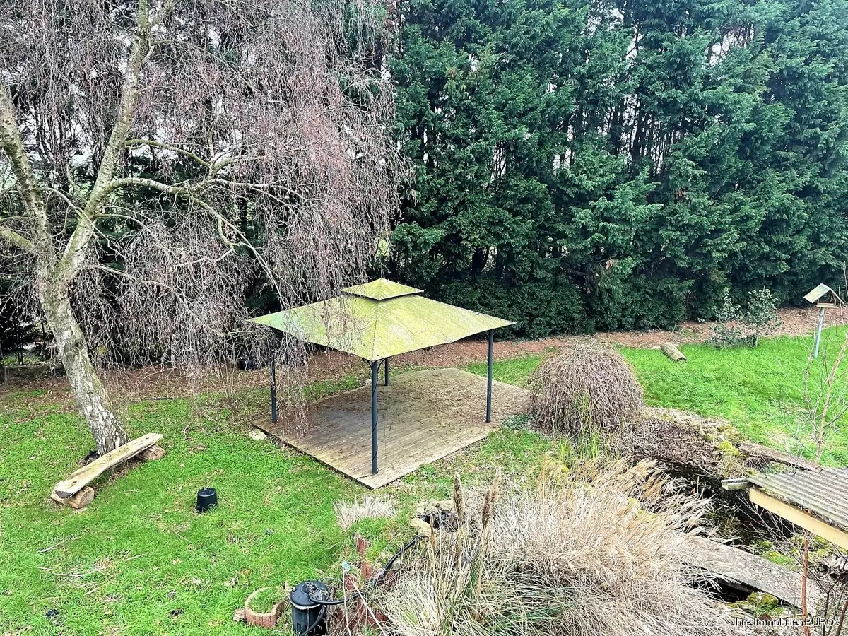 Der große Garten mit seinen Obstbäumen, Teich und Pavillon lädt zum Verweilen ein.
