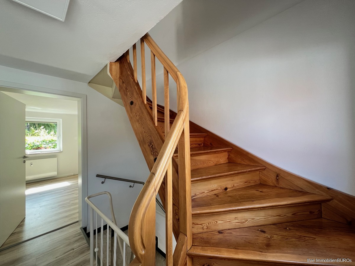 Zugang zur oberen Etage über eine schöne restaurierte Holztreppe