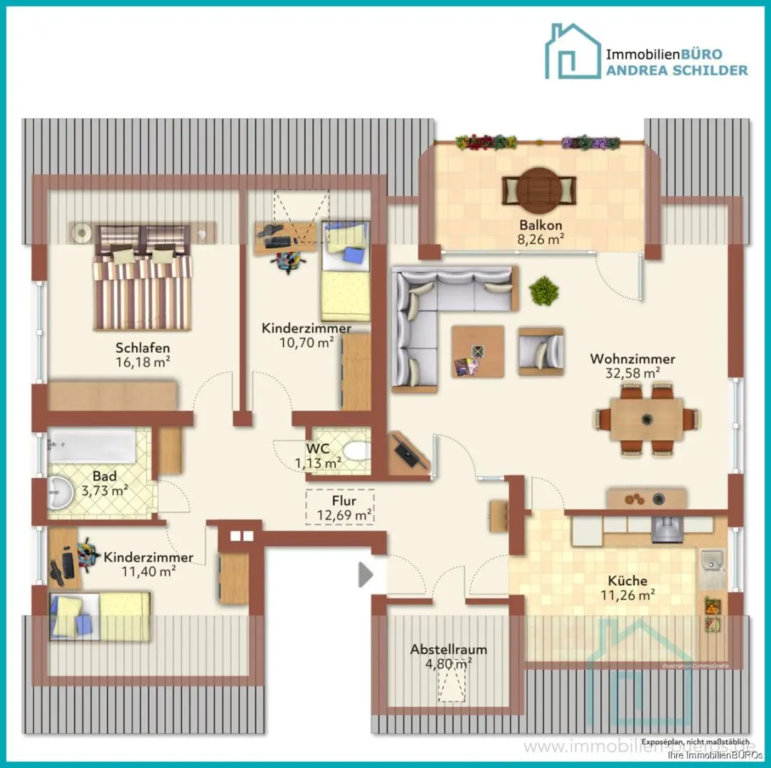 Die Wohnung wurde kürzlich umfassend renoviert und hat eine sonnige Dachloggia Richtung Süden.