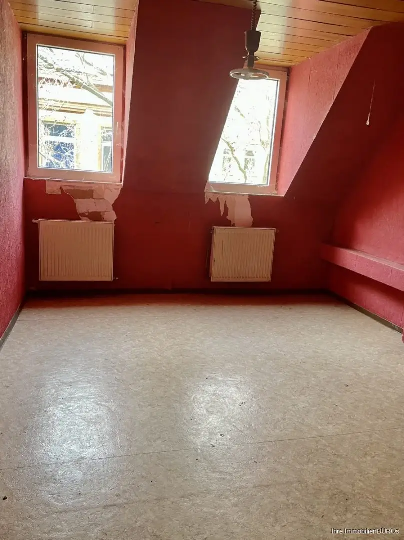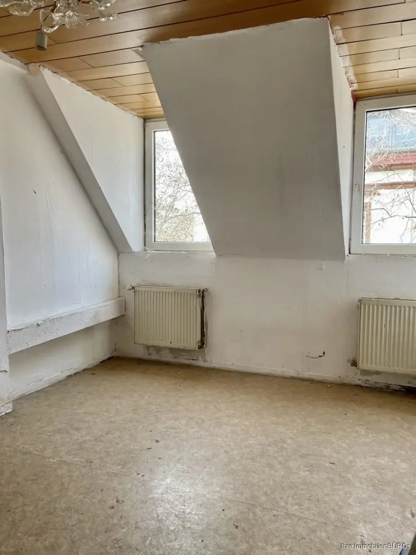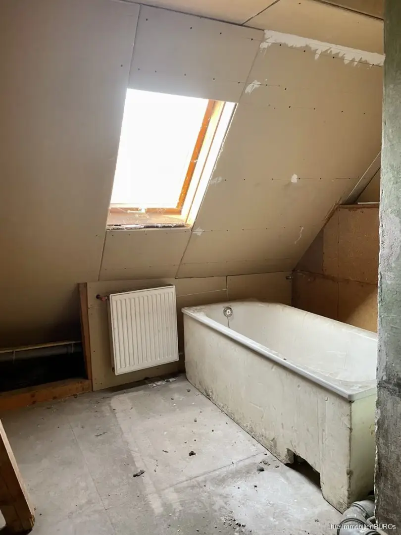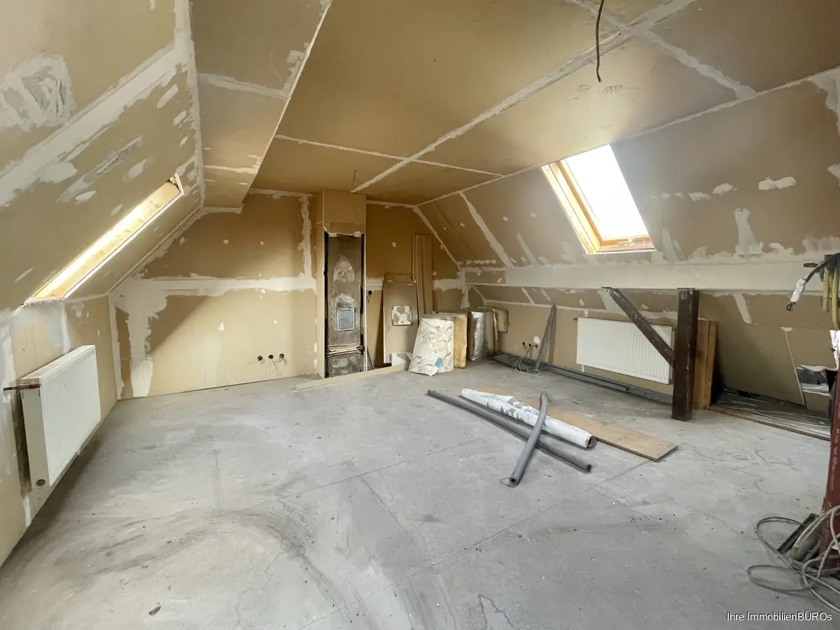 Im Dachgeschoß wurde mit dem Anbau begonnen, ist aber noch nicht fertiggestellt.