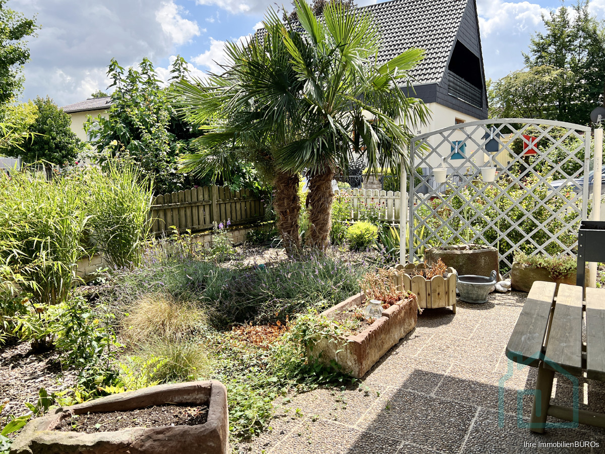 Das ca. 480 m² große Grundstück hält auch einiges für Sie bereit, so z. B. ein Gartenhäuschen, eine Werkstatt für Heimwerker im Nebengebäude und nicht zuletzt einen tollen Blick auf die Weinberge.