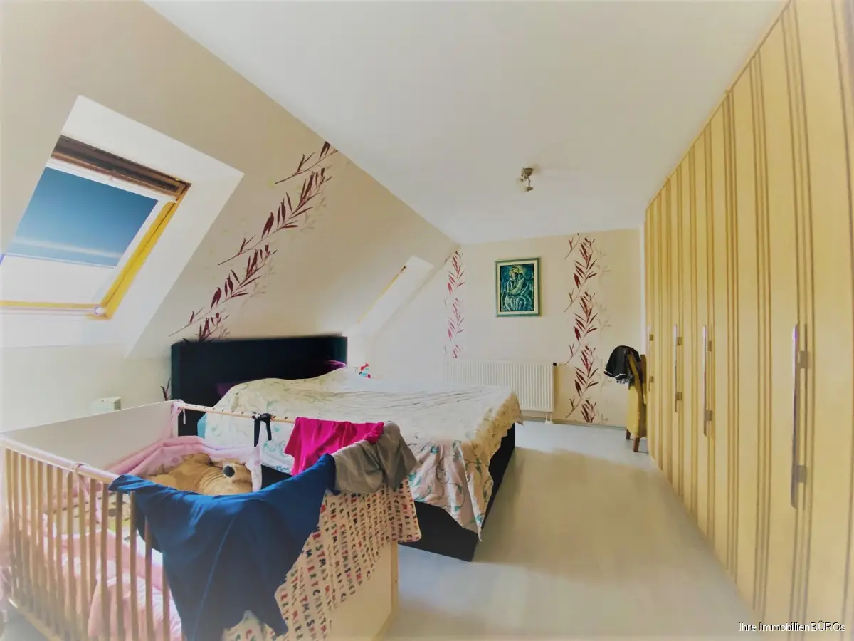 Das große Elternschlafzimmer liegt etwas separiert und hat angrenzend ein eigenes Badezimmer mit Badewanne und WC