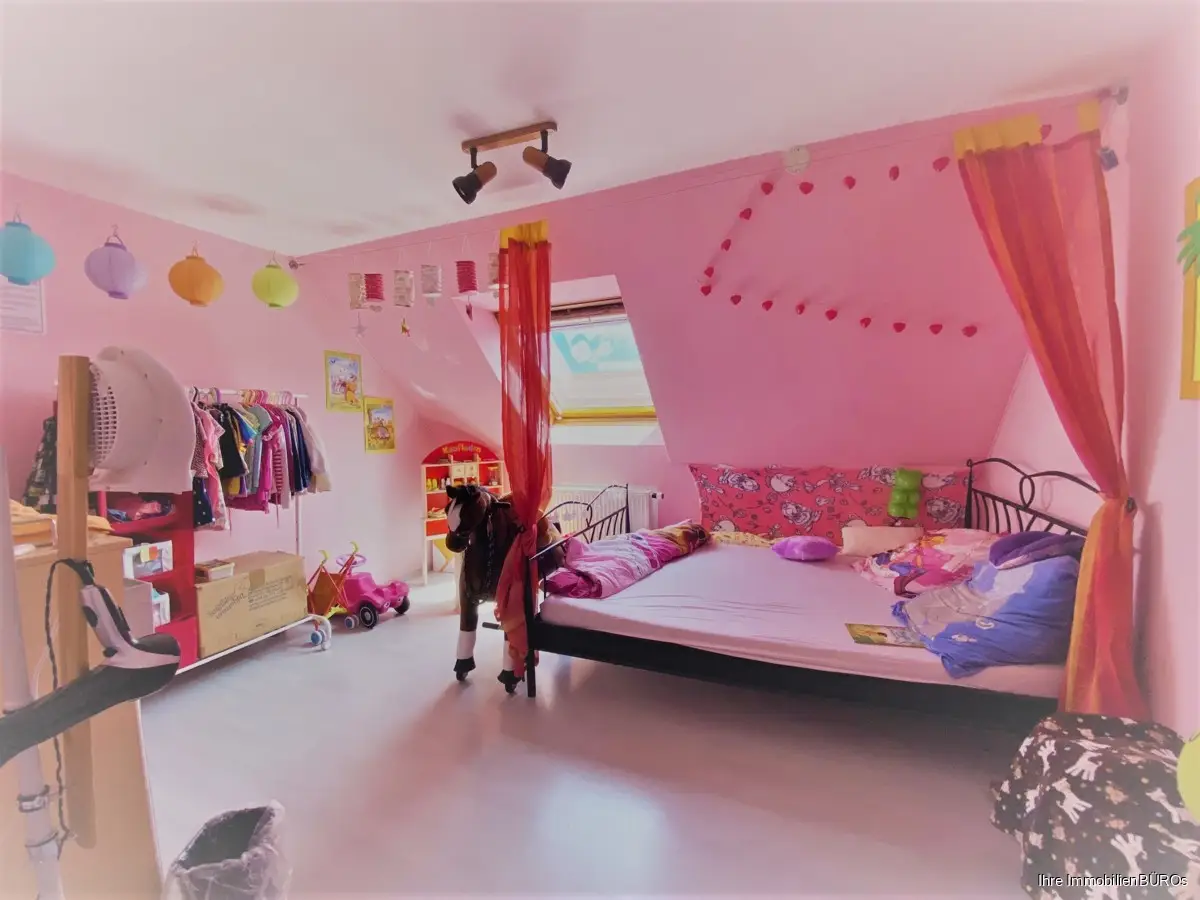Vom Eingangsbereich aus gelangen Sie zuerst in ein hübsches Kinder- oder Gästezimmer auf der linken Seite und ein Büro oder weiteres Kinderzimmer auf der rechten Seite.
