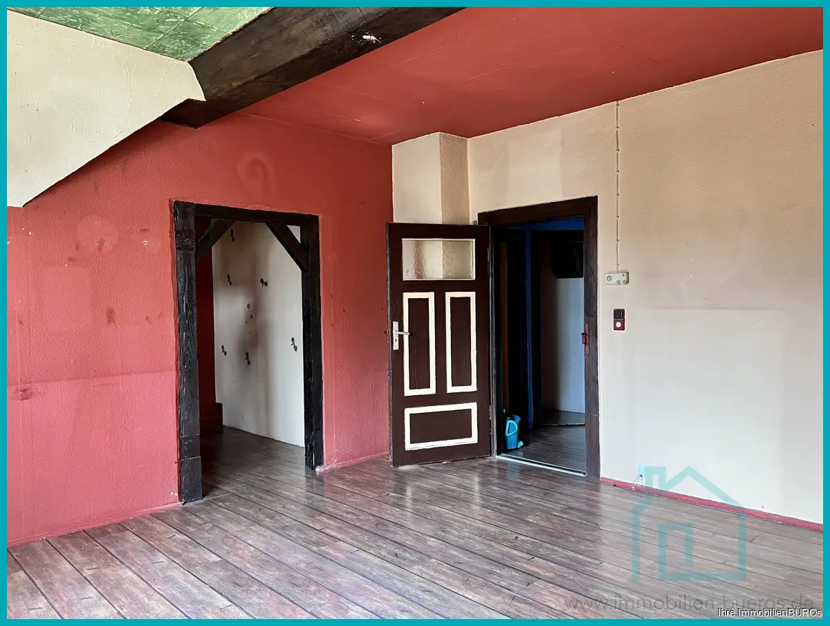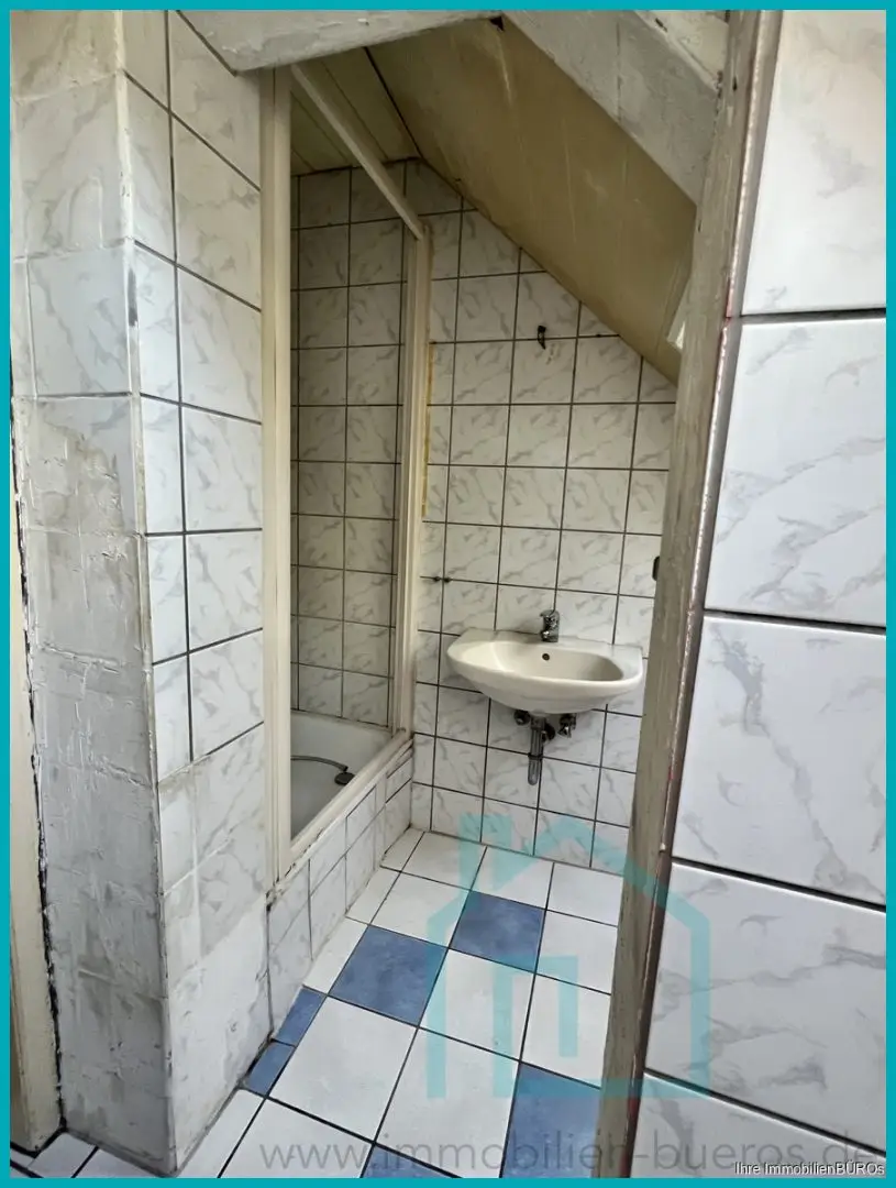 Ca. 50 m² Wohnfläche verteilen sich auf 2 Zimmer, eine Küche und ein kleines Bad im 2. Obergeschoss.